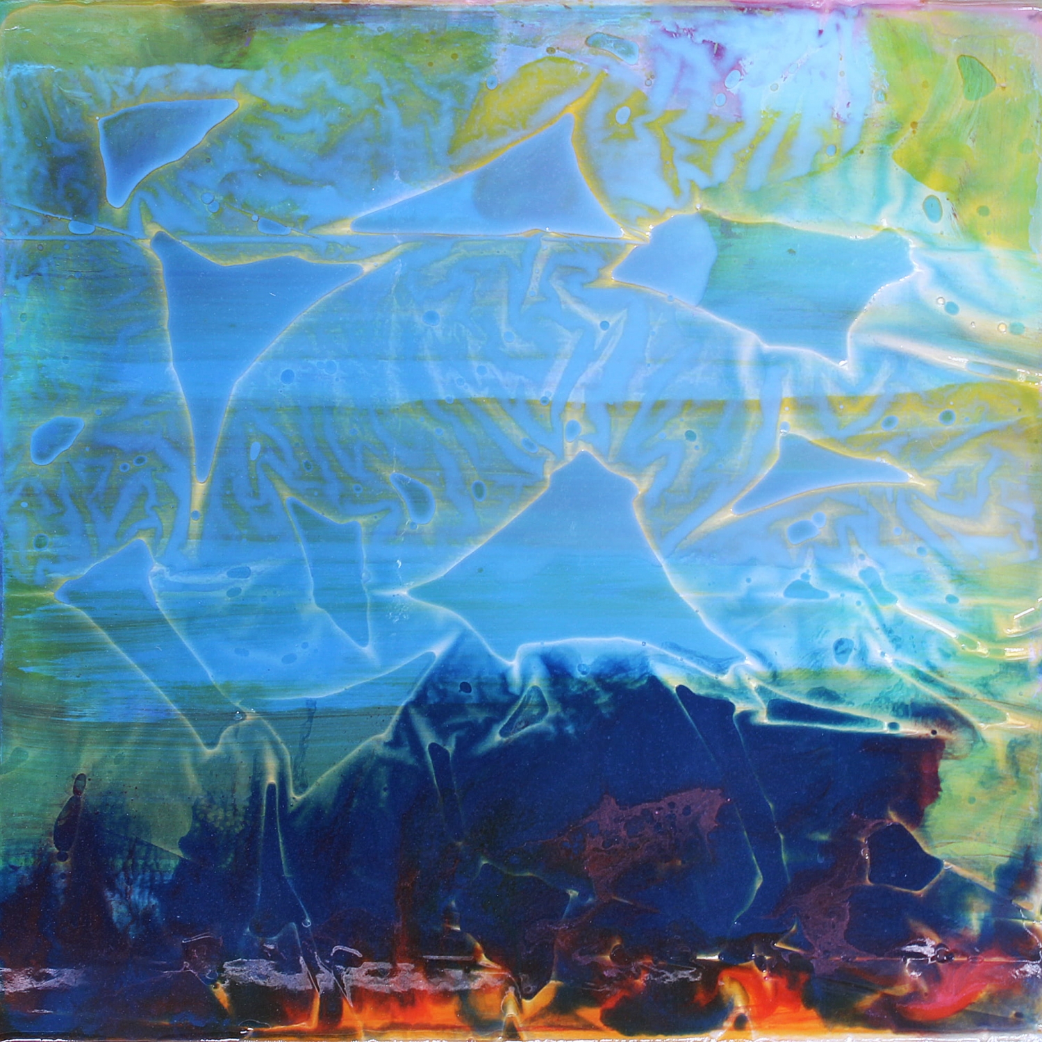 I colori, cristallizzati in lucide superfici o in piccole gocce, hanno le trasparenze del cielo e dell’acqua, mentre le forme diventano altro, in una continua trasformazione tra pittura e scultura. Nei suoi lavori si percepisce la capacità della resina di dare vita a infiniti motivi colorati, l’inorganico simula l’organicità fluida della natura, permettendo di tuffarsi nelle profondità marine come di osservare presenze vegetali di diversa natura.