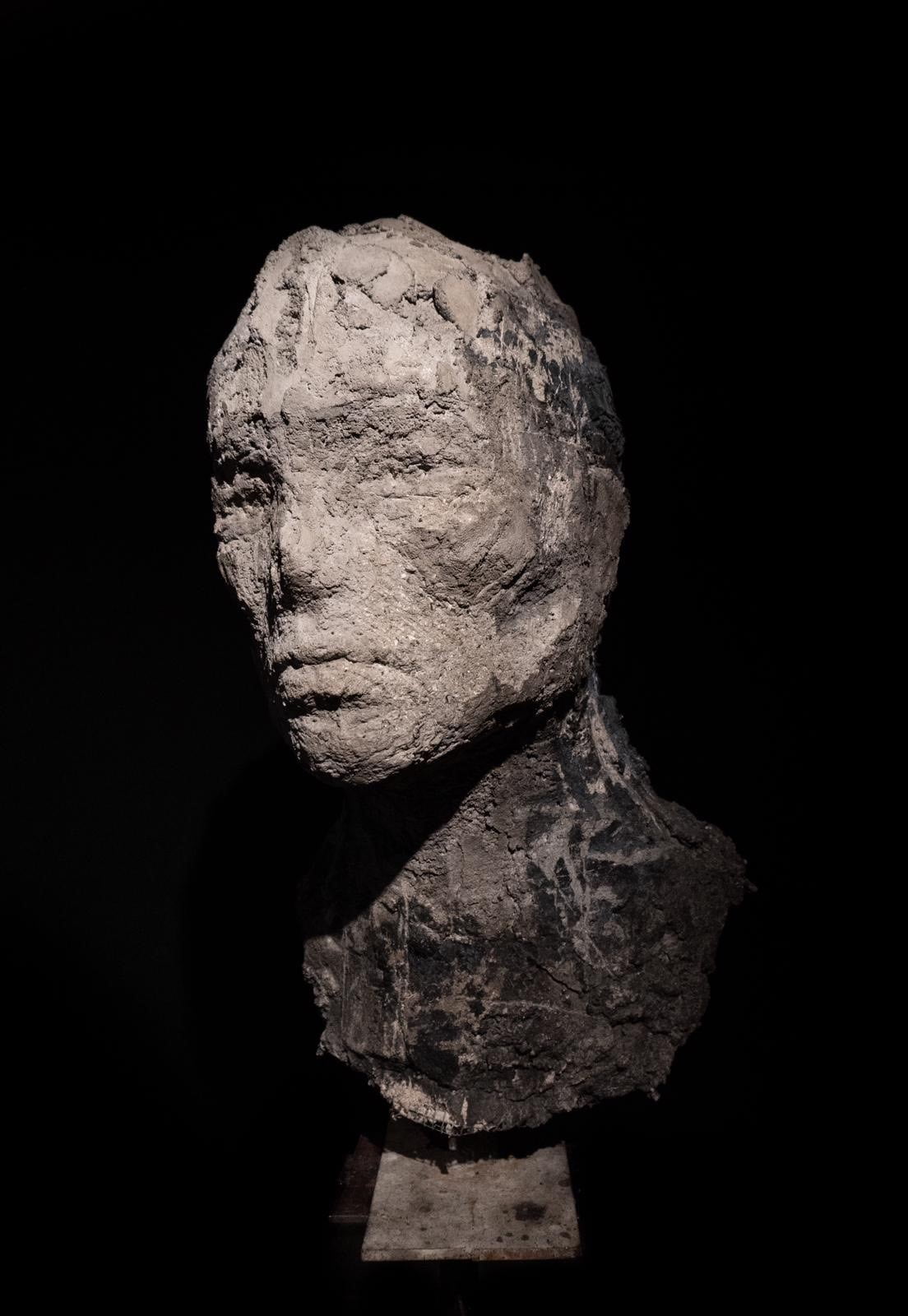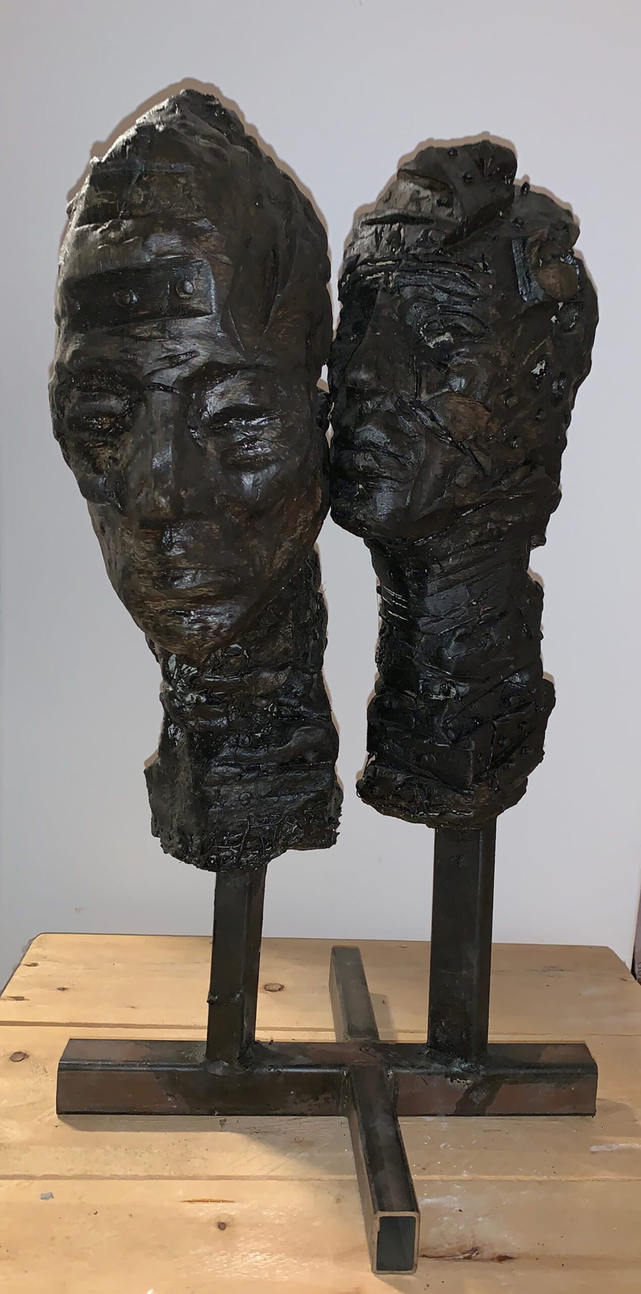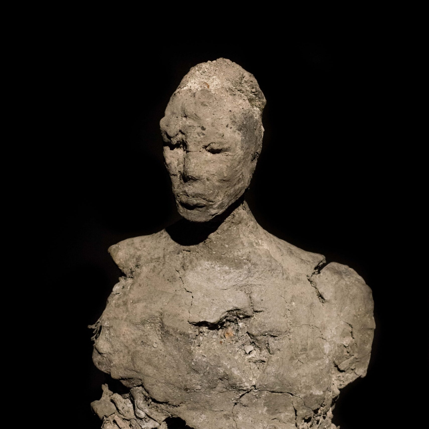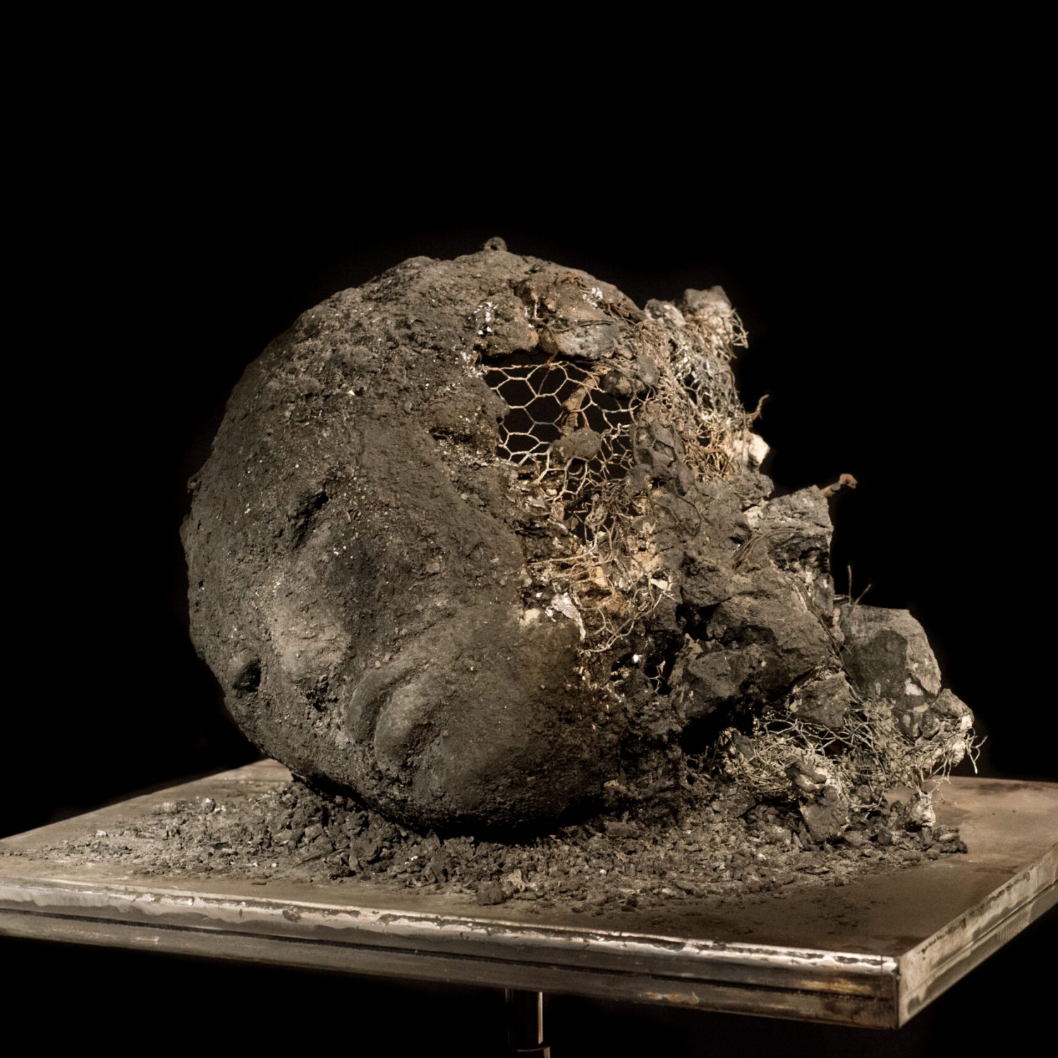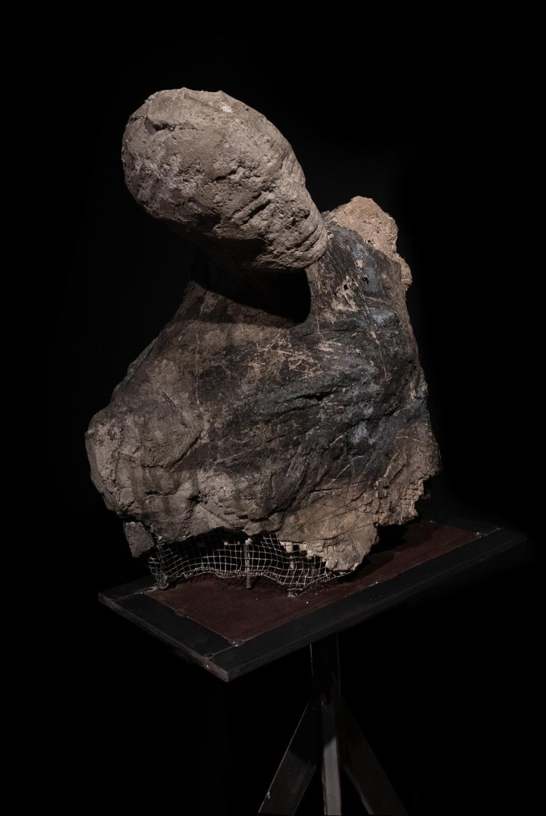 I molteplici processi di realizzazione e l’uso di materiali diversi come il cemento, il ferro, la calce, la cenere, il carbone e il gesso alabastrino contraddistinguono queste figure umane che sembrano uscite da un tempo indefinito, non sono ritrovamenti ma il processo di distruzione e trasformazione li fa essere appartenuti ad un universo indecifrabile come fossero stati modificati dal passaggio del tempo e dalla sua erosione naturale ma così non è.
