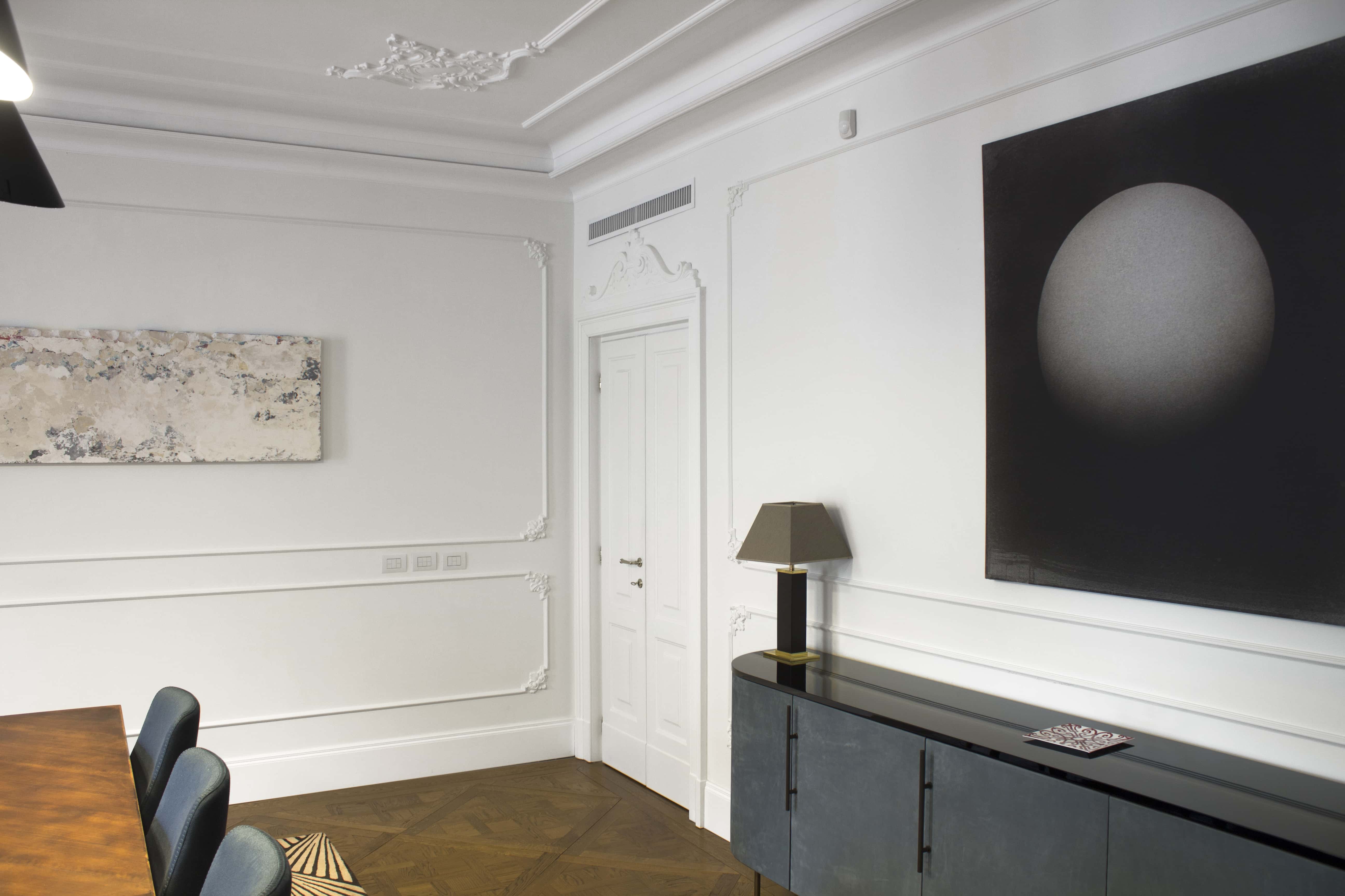 L’architetto ha mantenuto la struttura, rinnovando e rendendo attuali i servizi, le aree private e le zone comuni. Il risultato è un appartamento dai toni attuali e contemporanei senza compromettere il valore storico del contesto.
